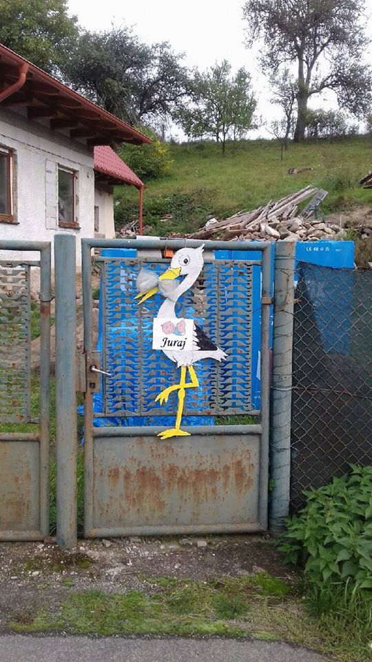Zdravím priatelia. Takže po dlhšom čase máme opäť bociana na dedine, ktorý doniesol manželom Tomášikovým Juraja. Rodičom prajem veľa trpezlivosti a starým rodičom prajem veľa radosti. A Jurka vítam v obci.
